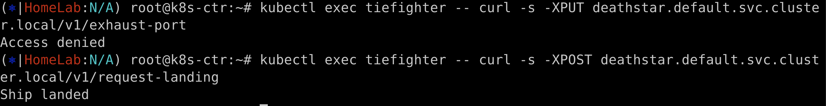 kubectl exec tiefighter -- curl -s -XPUT deathstar.default.svc.cluster.local/v1/exhaust-port