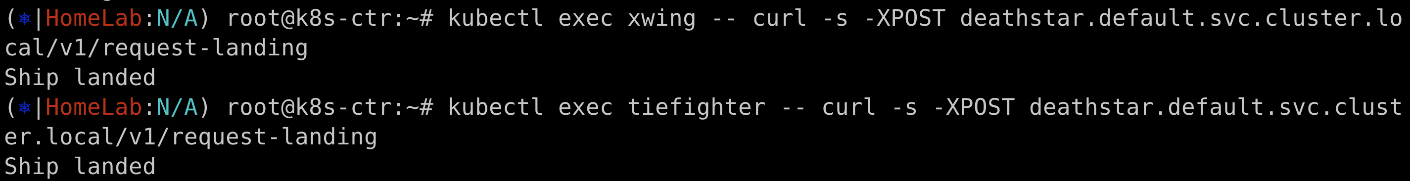 kubectl exec tiefighter -- curl -s -XPOST deathstar.default.svc.cluster.local/v1/request-landing
