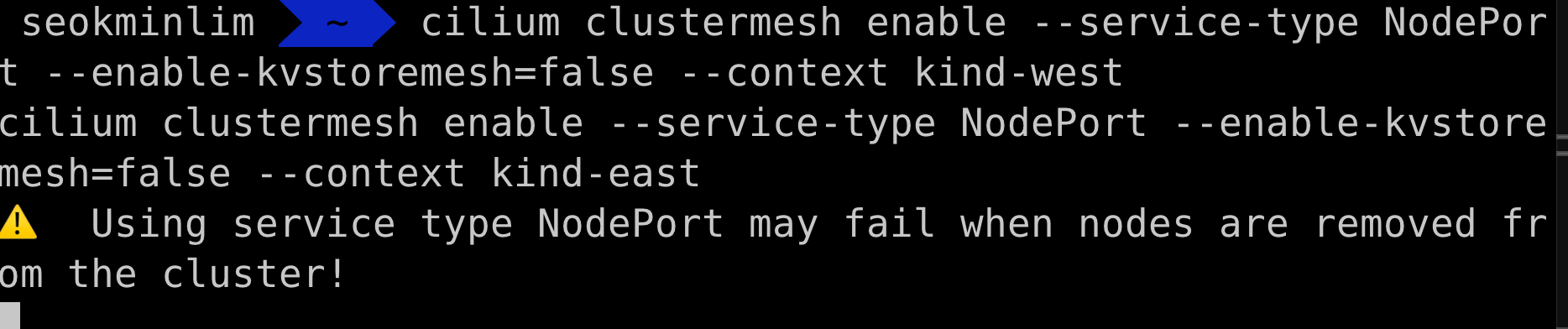 cilium clustermesh enable --service-type NodePort --enable-kvstoremesh=false --context kind-west