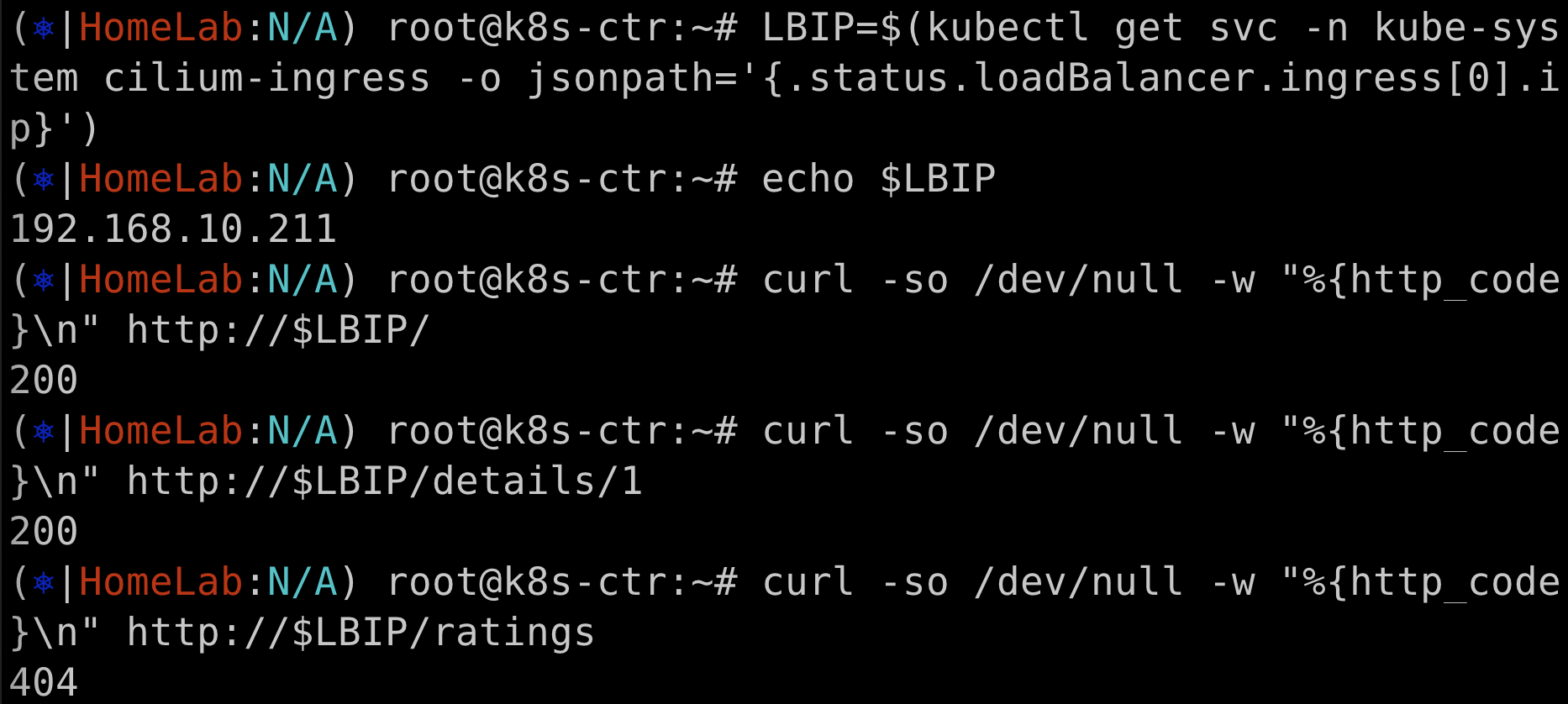 curl -so /dev/null -w "%{http_code}\n" http://$LBIP/ratings # 404