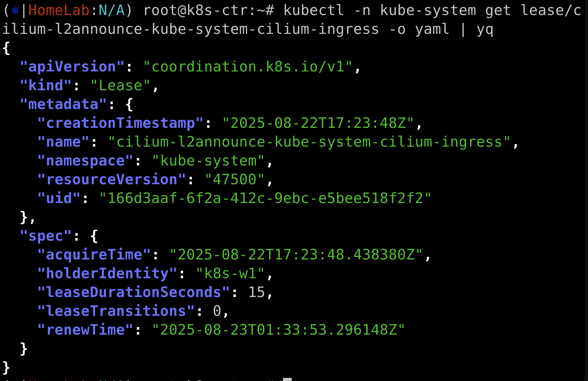kubectl -n kube-system get lease/cilium-l2announce-kube-system-cilium-ingress -o yaml | yq
