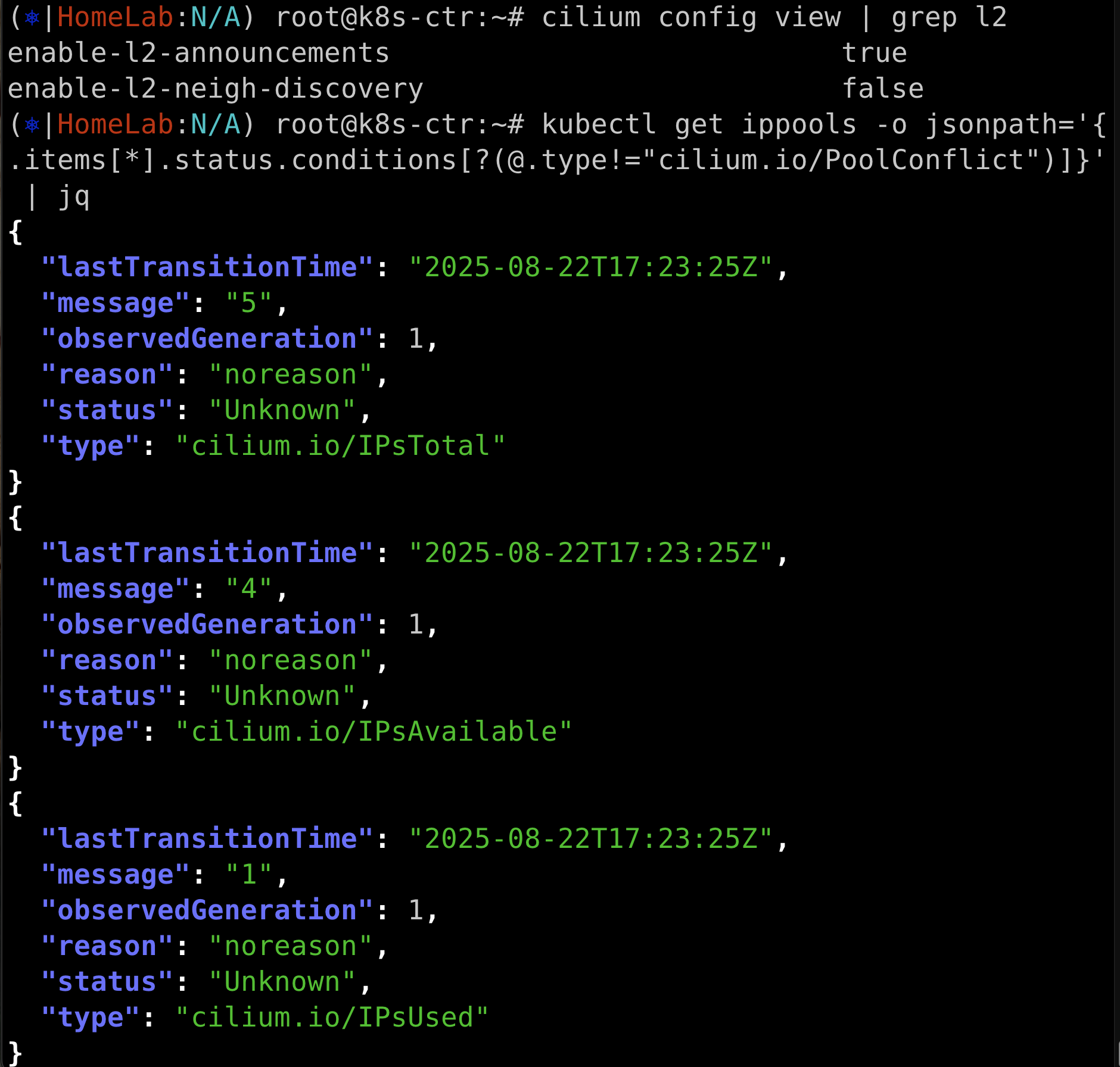 kubectl get ippools -o jsonpath='{.items[*].status.conditions[?(@.type!="cilium.io/PoolConflict")]}' | jq