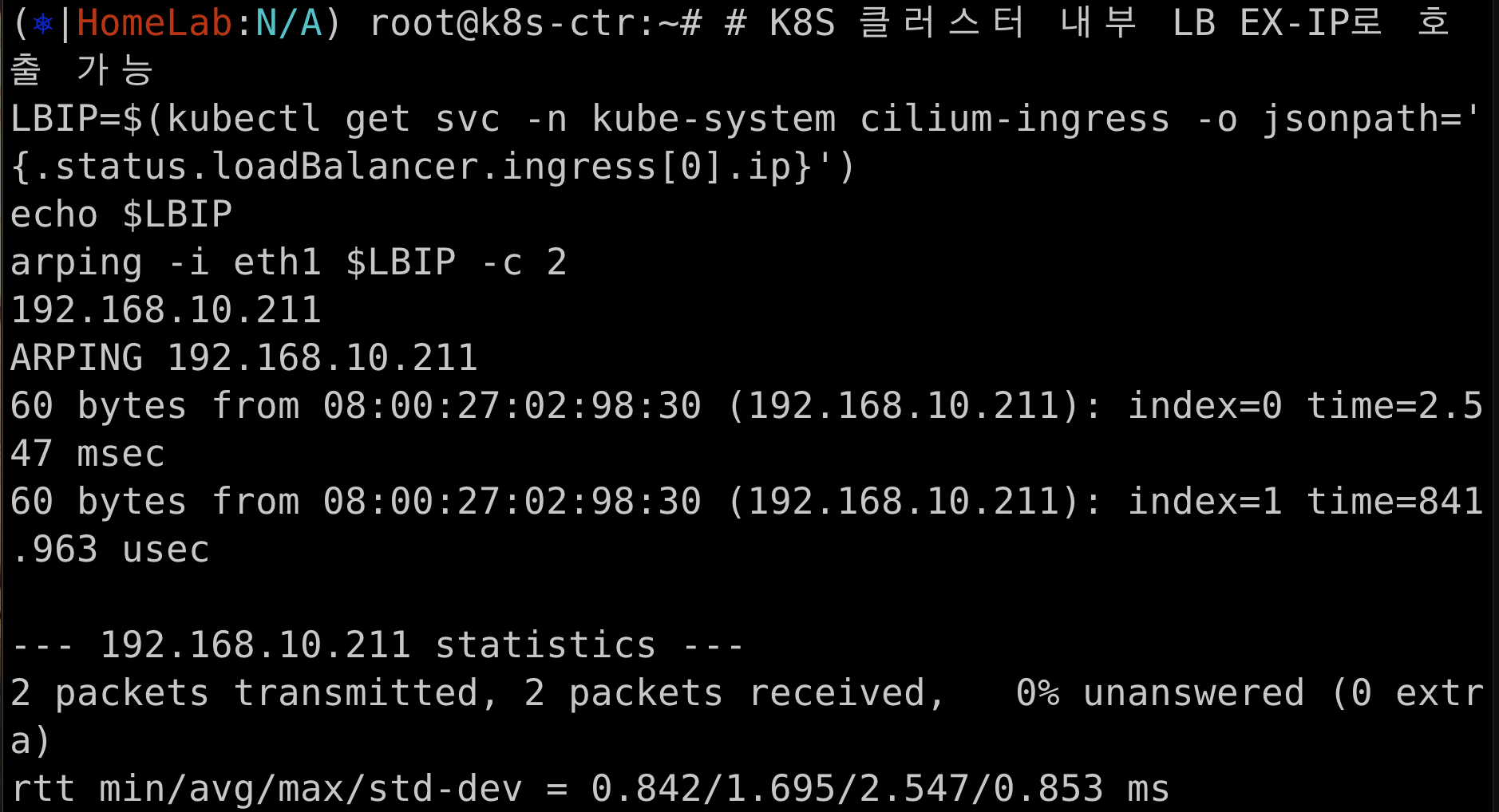 # k8s 외부 노드(router)에서 LB EX-IP로 호출 가능 확인