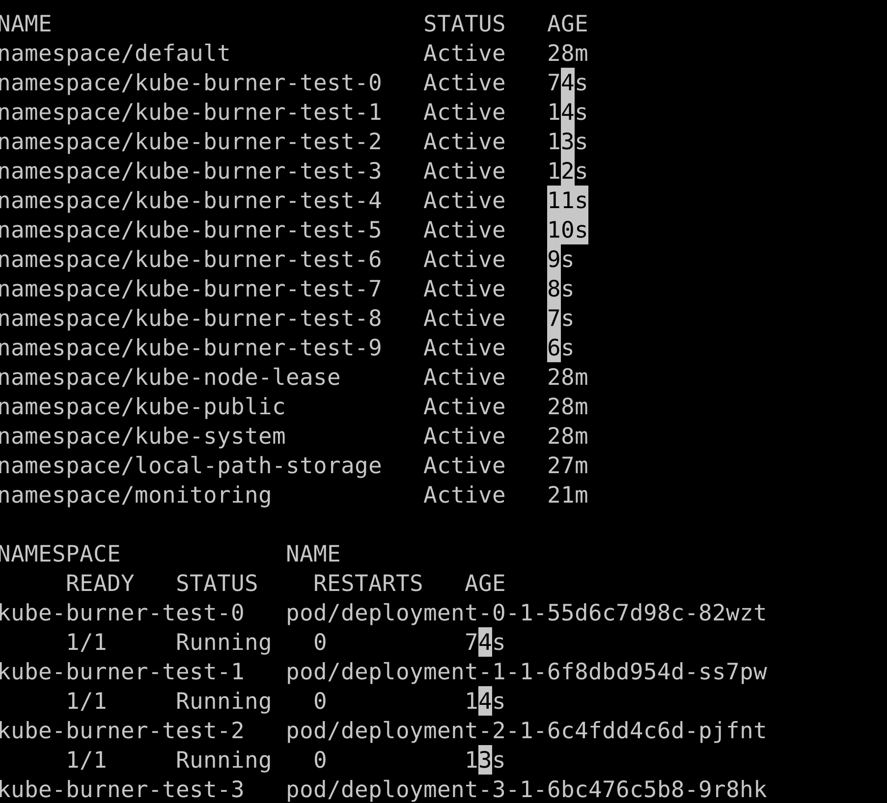 kubectl get ns -l kube-burner-job=delete-me